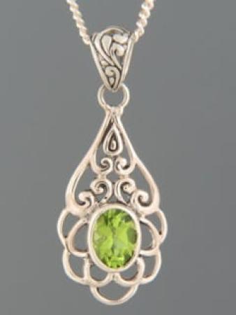 This Sterling Silver pendant features an oval faceted Peridot stone.