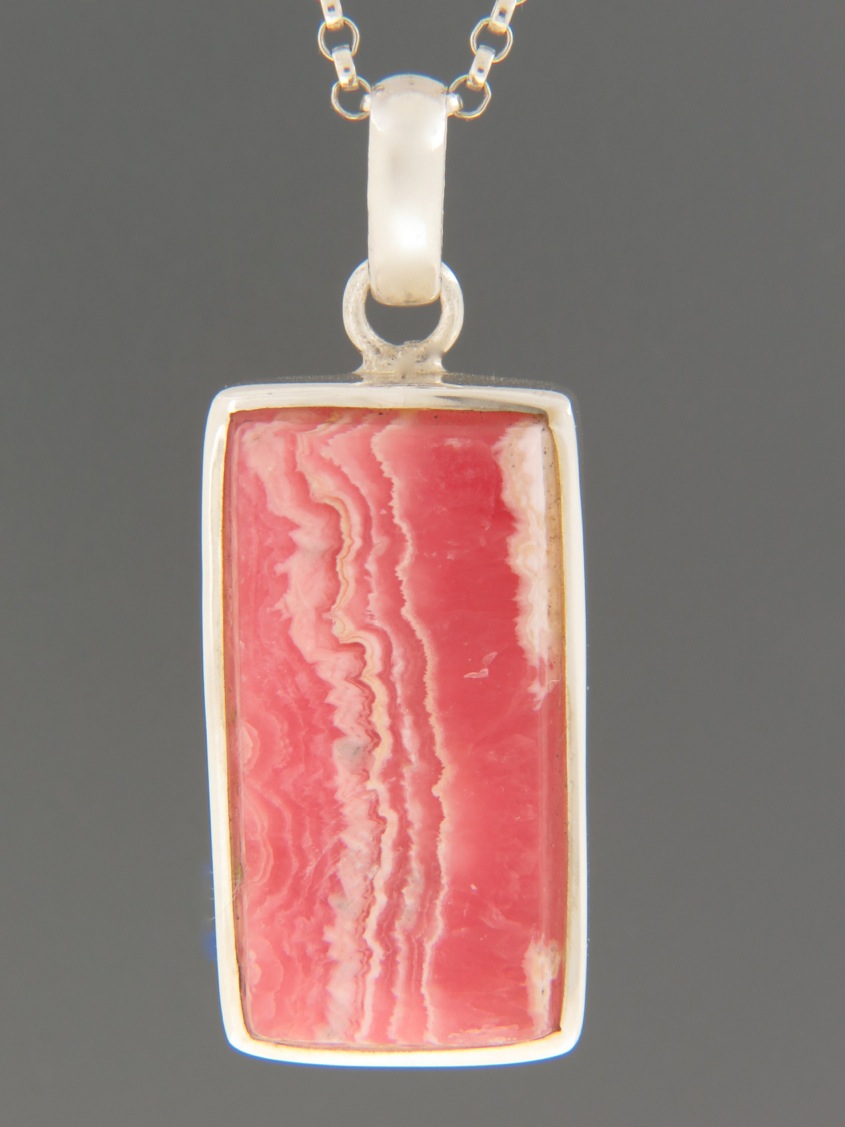 This Sterling Silver pendant features a rectangular Rhodochrosite cabochon.