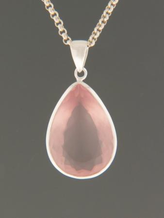 This Sterling Silver pendant features a large, teardrop shaped, faceted Rose Quartz stone.