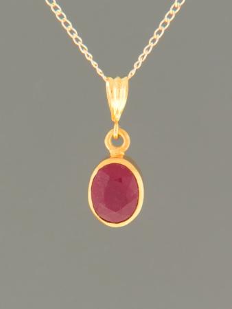 This Gold Vermeilpendant features a faceted, oval shaped, natural Ruby stone.
