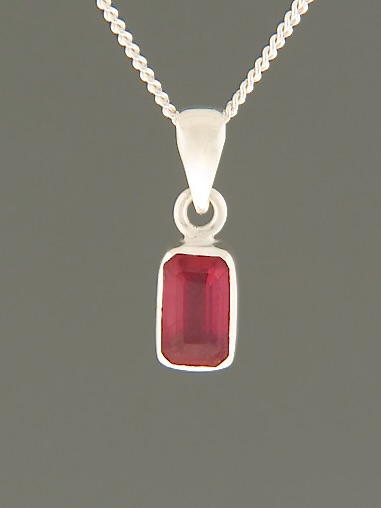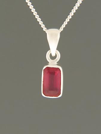 This Sterling Silver pendant features a faceted, rectangular shaped, natural Ruby stone.