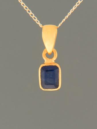 This Gold Vermeilpendant features a faceted, rectangular shaped, natural Blue Sapphire stone.
