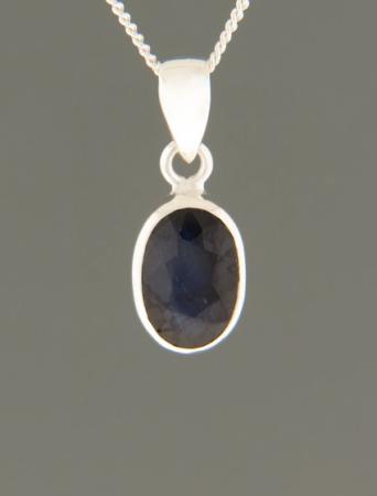 This Sterling Silver pendant features a faceted, oval shaped, natural Blue Sapphire stone.
