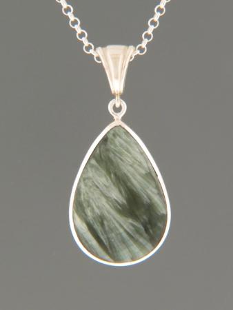 This Sterling Silver pendant features a teardrop-shaped Seraphinite cabochon.