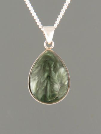 A Sterling Silver pendant featuring a teardrop Seraphinite stone.