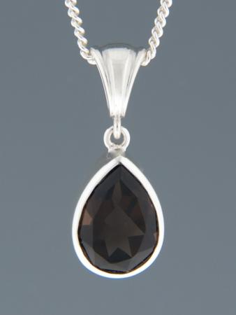 This Sterling Silver pendant features a teardrop faceted Smokey Quartz stone.