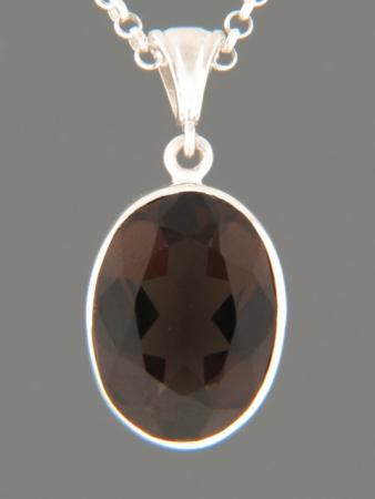 This Sterling Silver pendant features a faceted, oval-shaped Smokey Quartz stone.