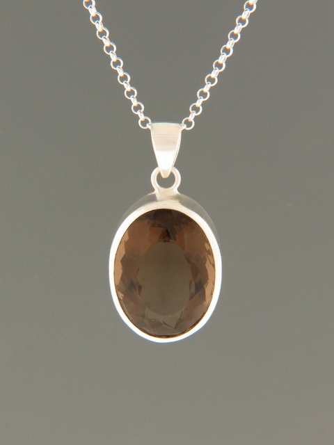 This Sterling Silver pendant features a faceted, oval shaped, slightly golden Smokey Quartz stone.
