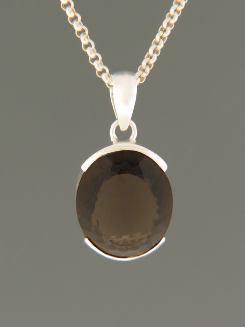 This Sterling Silver pendant features a faceted, oval shaped Smokey Quartz stone.