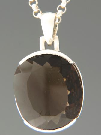 This Sterling Silver pendant features an oval faceted Smokey Quartz stone.