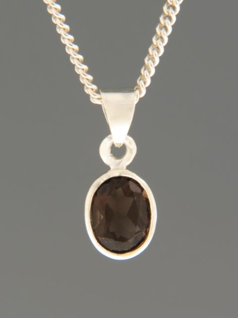 This Sterling Silver pendant features an oval faceted Smokey Quartz stone.