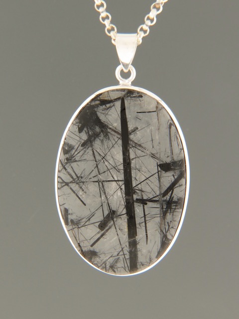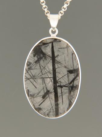 This Sterling Silver pendant features a large, oval shaped Tourmalinated Quartz cabochon.