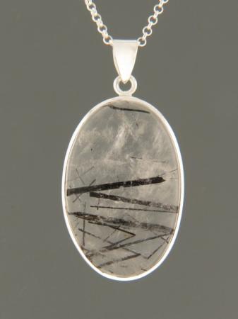This Sterling Silver pendant features a large, oval shaped Tourmalinated Quartz cabochon.