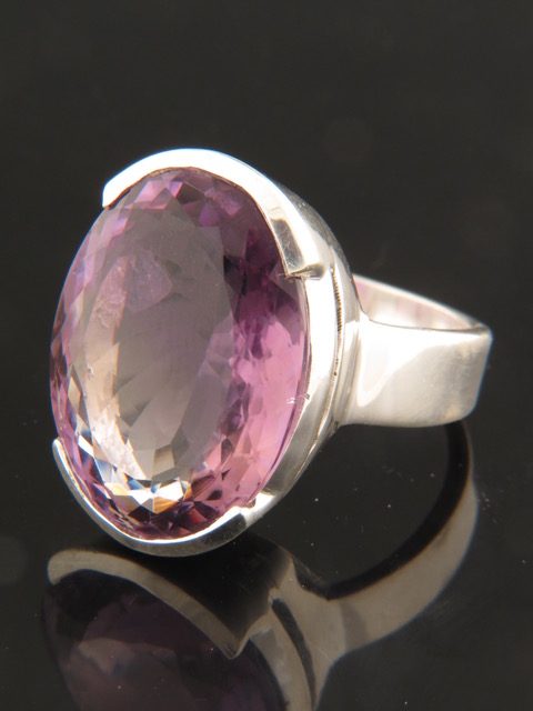 This Sterling Silver ring features a faceted, oval shaped Amethyst stone.