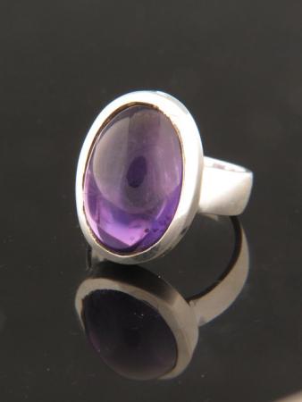 This Sterling Silver ring features an oval shaped Amethyst cabochon with great colour.