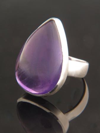 This Sterling Silver ring features a teardrop shaped Amethyst cabochon.