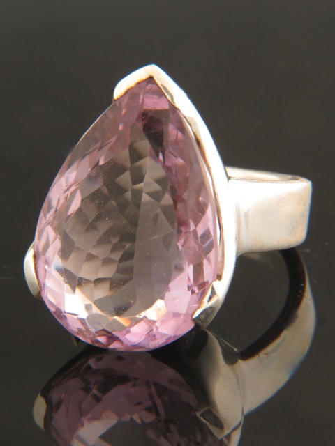 This Sterling Silver ring features a large, faceted, teardrop shaped Amethyst stone.
