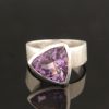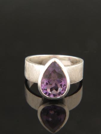 This textured Sterling Silver ring features a faceted, teardrop shaped Amethyst stone.