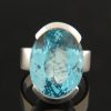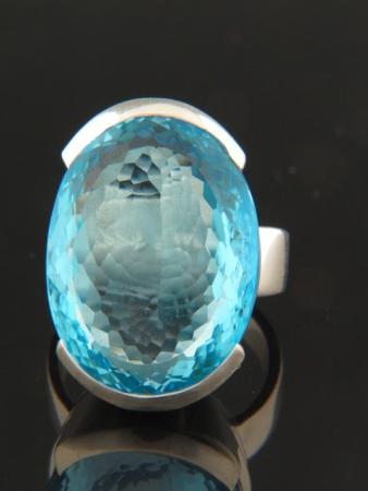 This Sterling Silver ring features a large, oval shaped, faceted Blue Topaz stone.
