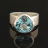 This textured Sterling Silver ring features a faceted, teardrop shaped Blue Topaz stone.