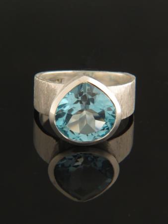 This textured Sterling Silver ring features a faceted, teardrop shaped Blue Topaz stone.