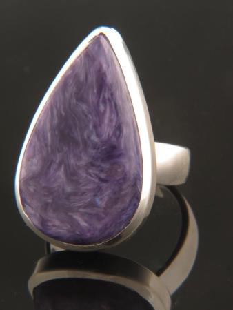 This Sterling Silver ring features a teardrop shaped Charoite cabochon.