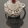 This Sterling Silver ring features a round Charoite cabochon with a textured band.