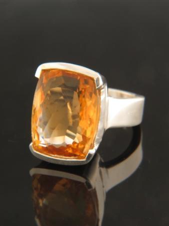 This Sterling Silver ring features a faceted, rectangular shaped Citrine stone.