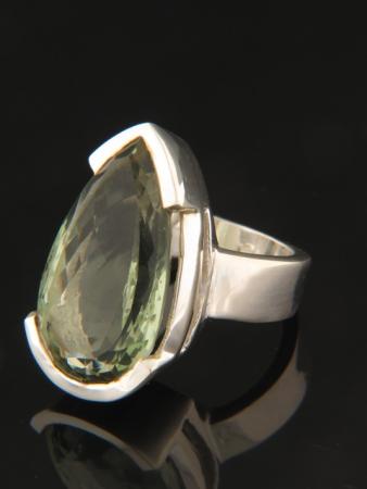 This Sterling Silver ring features a faceted, teardrop shaped Green Amethyst (Prasiolite) stone.