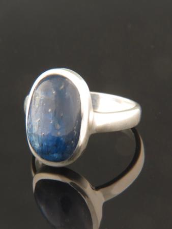This Sterling Silver ring features an oval shaped Kyanite cabochon with great colour and chatoyancy.