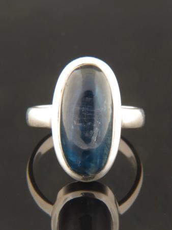 This Sterling Silver ring features an oval shaped Kyanite cabochon with great colour and chatoyancy.