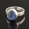 This Sterling Silver ring features a large oval Labradorite cabochon showing vibrant green, gold and blue colours.