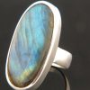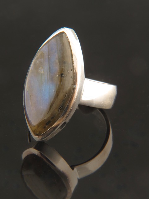 This Sterling Silver ring features a marquise shaped Labradorite cabochon showing purple and blue colours.