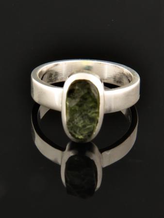 This Sterling Silver ring features a natural, un-cut Moldavite stone.