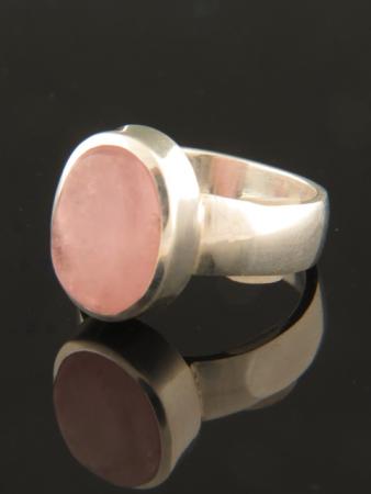 This Sterling Silver ring features an oval shaped Morganite cabochon.