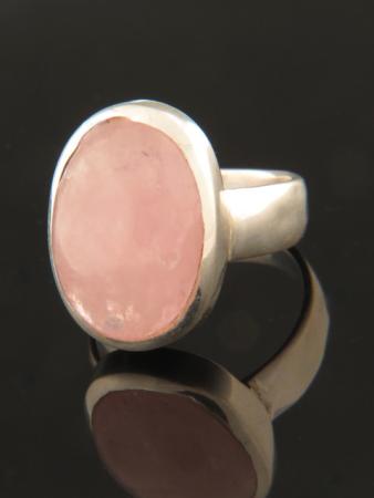 This Sterling Silver ring features an oval shaped Morganite cabochon.