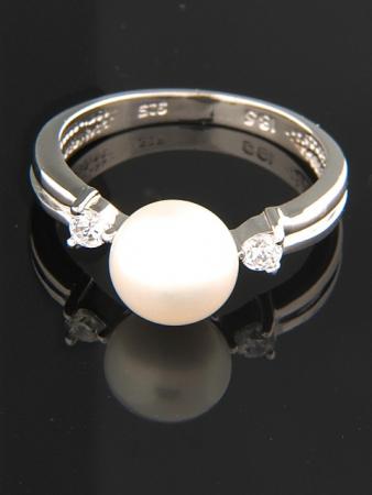 White Pearl Ring with Zircon – Sterling Silver – Y100R
