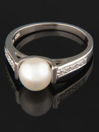 White Pearl Ring with Zircon – Sterling Silver – Y101R