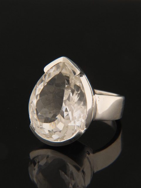 This Sterling Silver ring features a faceted, teardrop shaped Clear Quartz crystal stone.