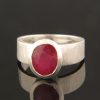 This textured Sterling Silver ring features an oval shaped, natural Ruby cabochon.