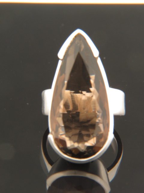 This Sterling Silver ring features a faceted, long teardrop shaped Smokey Quartz stone.