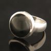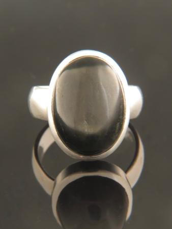 This Sterling Silver ring features an oval shaped Black Star Diopside cabochon showing a clearly defined asterism in the form of a four pronged star.