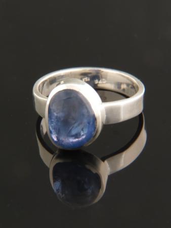 This Sterling Silver ring features a freeform shape Tanzanite cabochon.