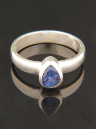 This Sterling Silver ring features a faceted, teardrop shaped Tanzanite stone.