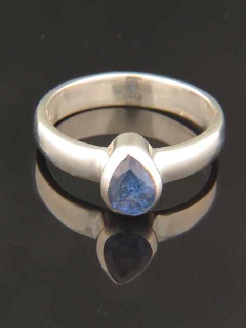 This Sterling Silver ring features a faceted, teardrop shaped Tanzanite stone.