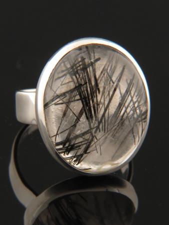 This Sterling Silver ring features a clear, oval Tourmalinated Quartz cabochon.