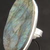 This Sterling Silver ring features a marquise shaped Tourmalinated Quartz cabochon with large and small Black Tourmaline inclusions.
