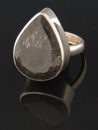 This Sterling Silver ring features a faceted teardrop Tourmalinated Quartz stone.