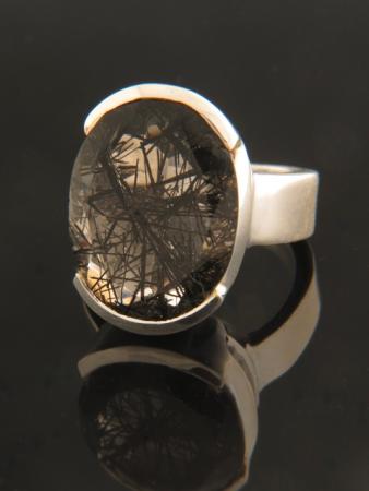 This Sterling Silver ring features a faceted, oval shaped Tourmalinated Quartz stone.