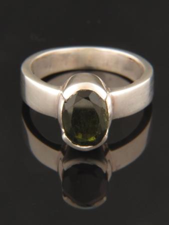 This Sterling Silver ring features a faceted, oval shaped Green Tourmaline (Verdilite) stone.